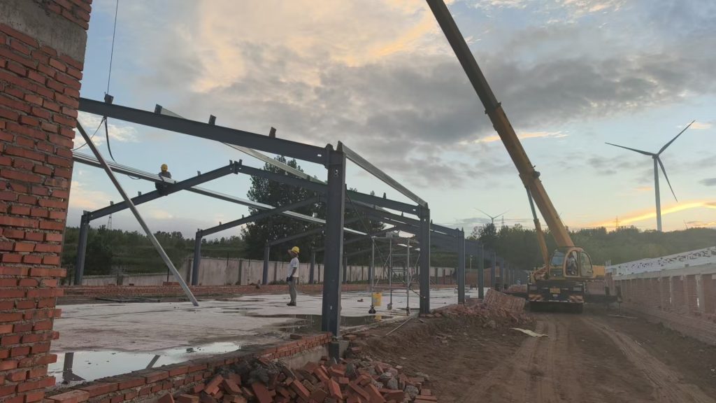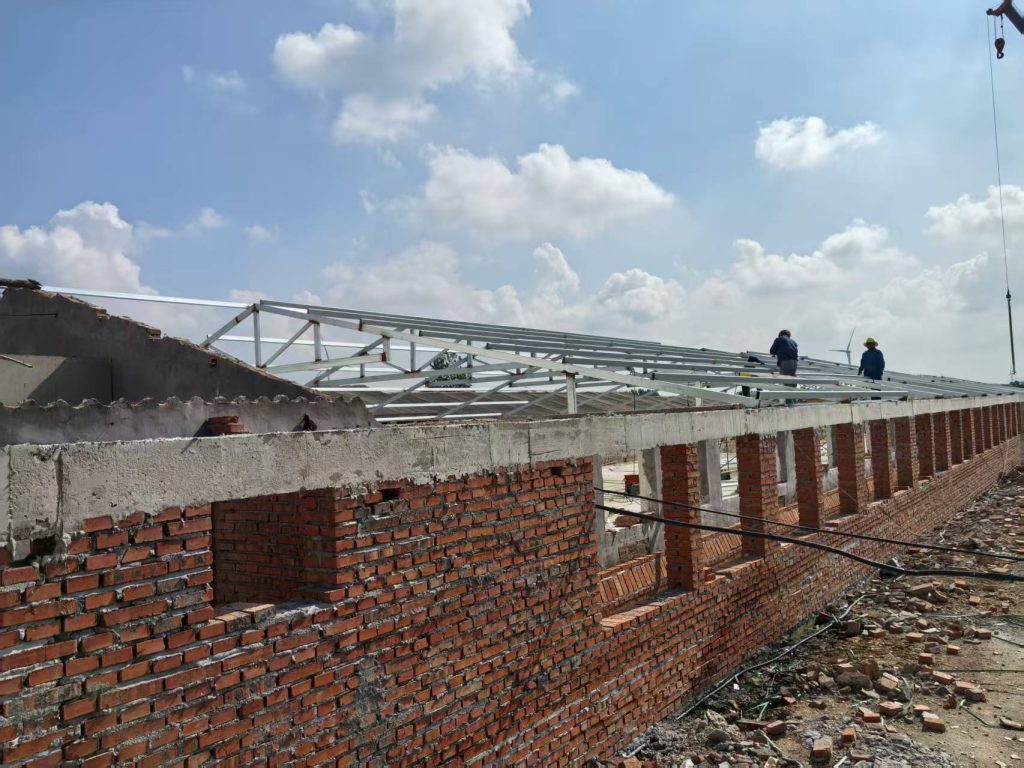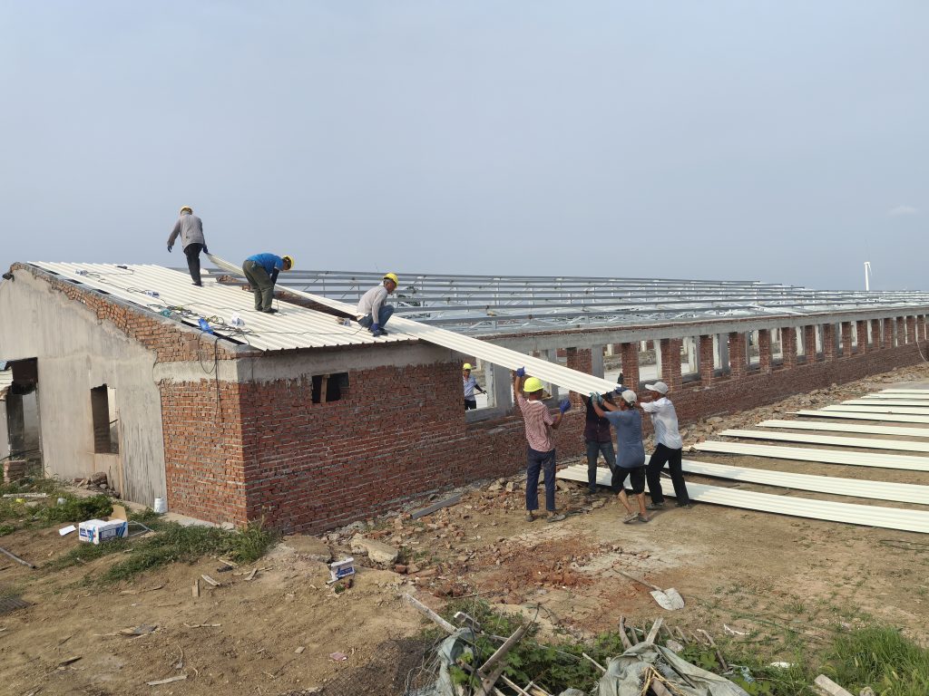 1、新建鸭舍安装钢梁及檩条。 2、钢结构