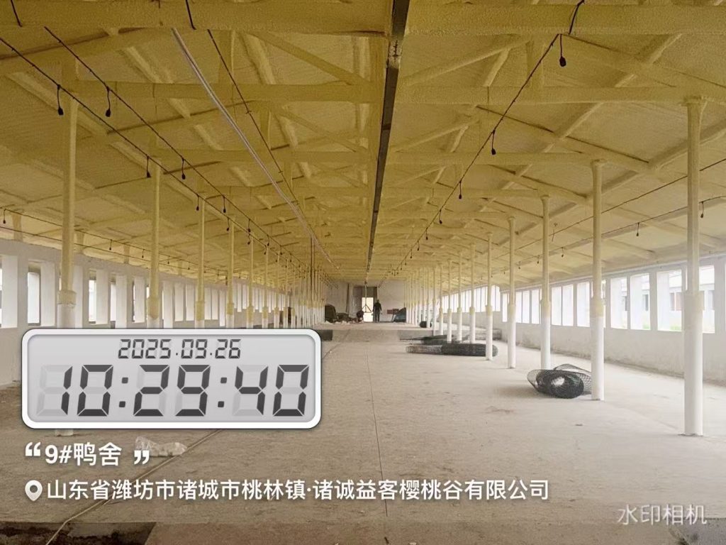 1、由于下雨土建未能施工。 2、鸭舍内安