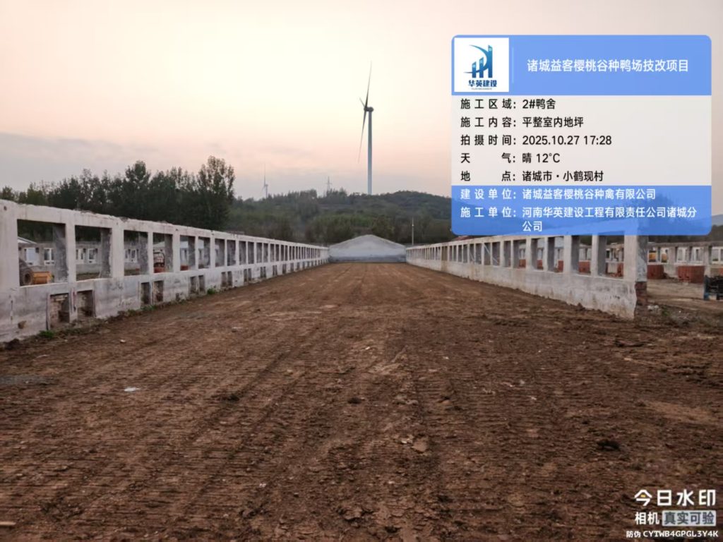 1、2#鸭舍砌筑饮水岛外墙。 2、室外雨