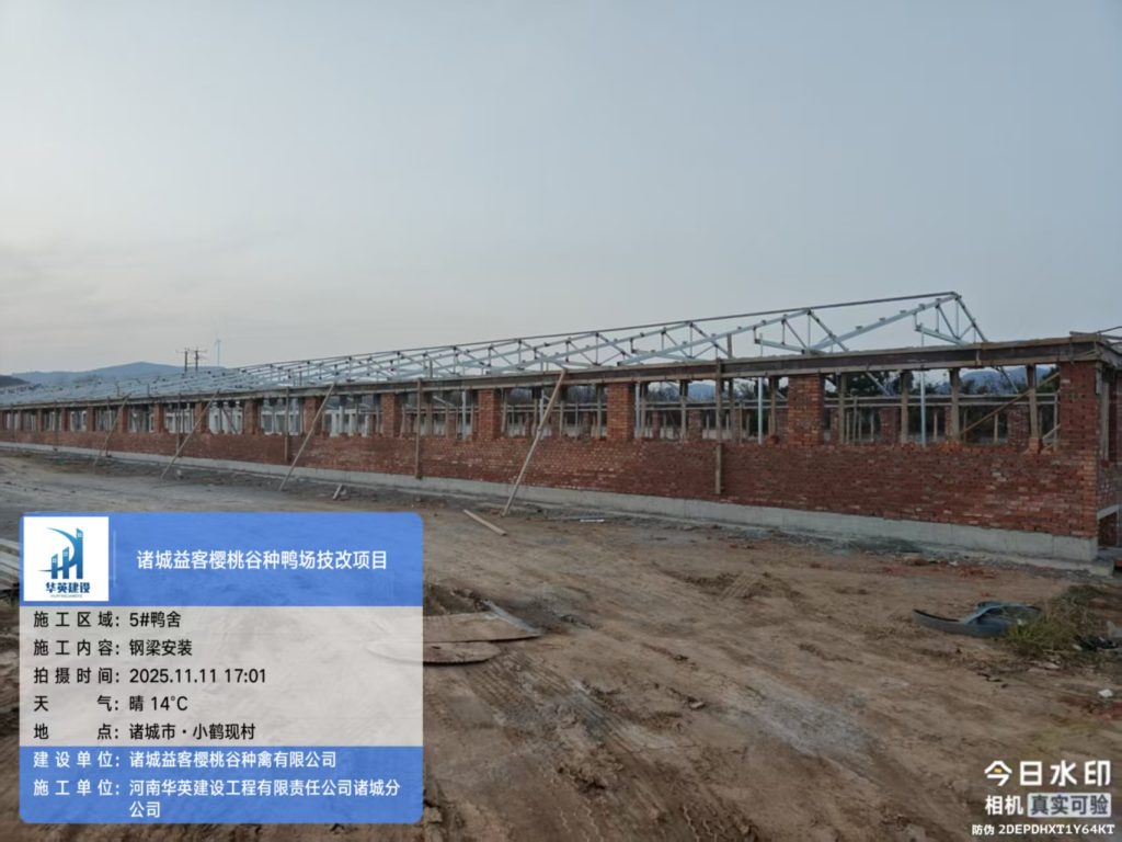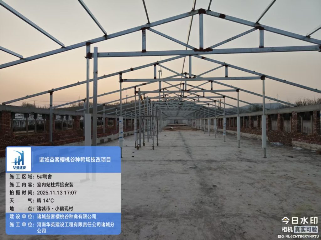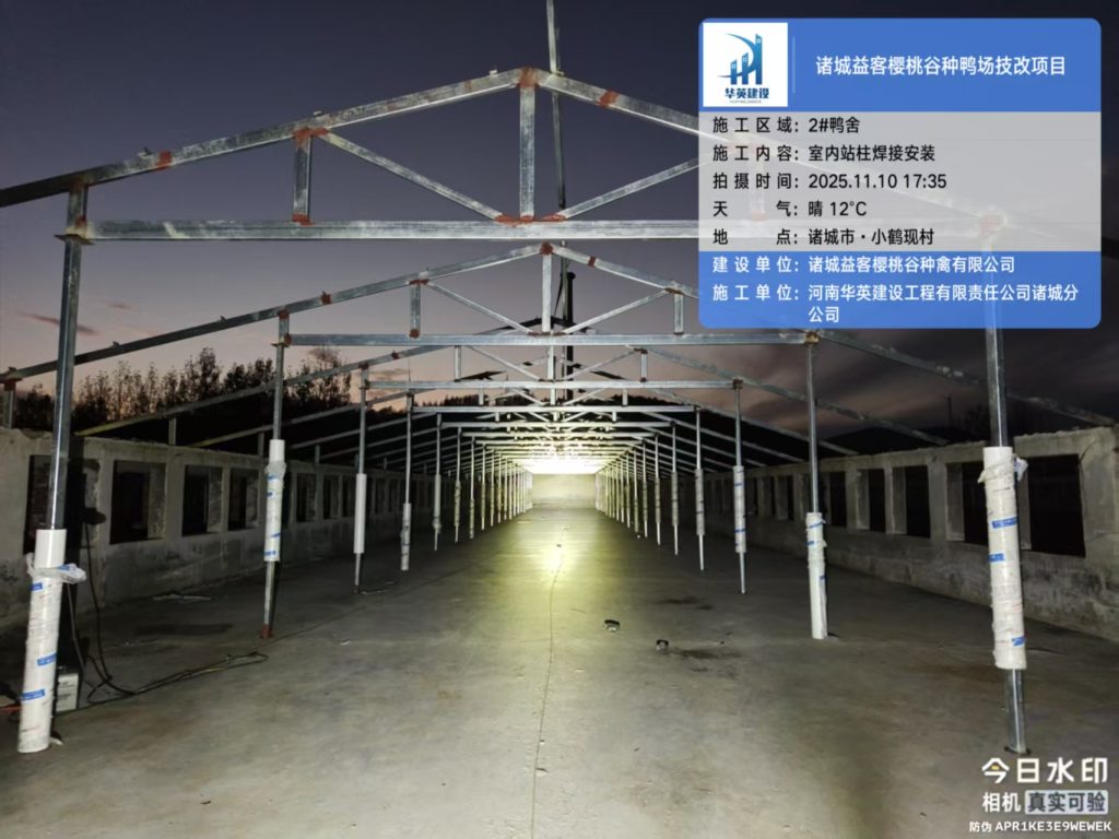 1、1#2#鸭舍安装钢梁及钢梁下立柱。