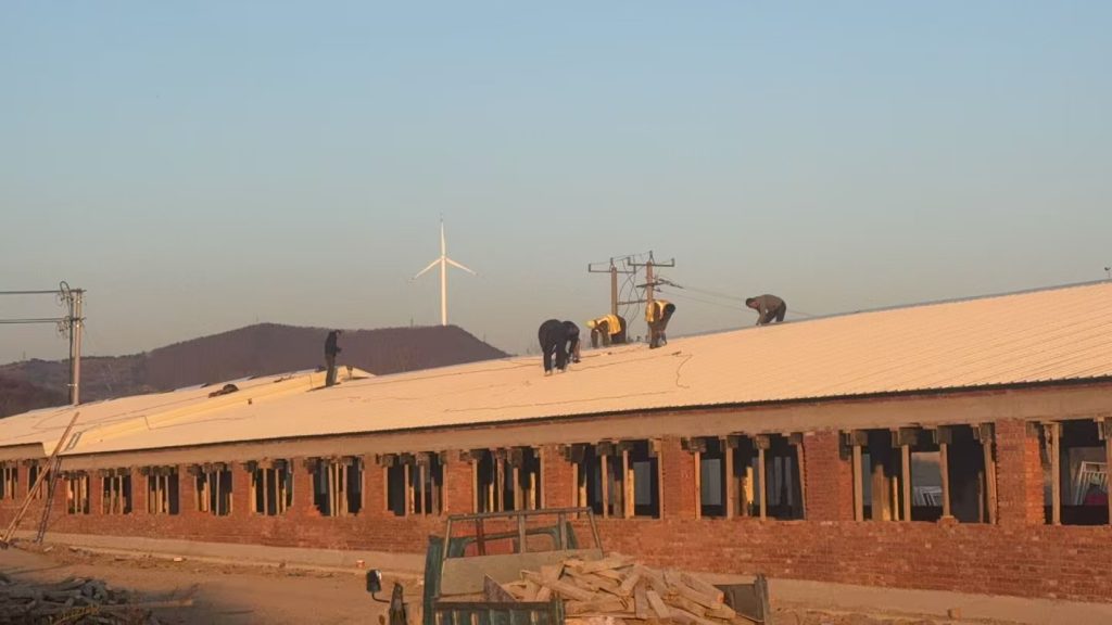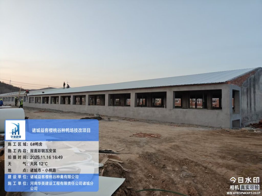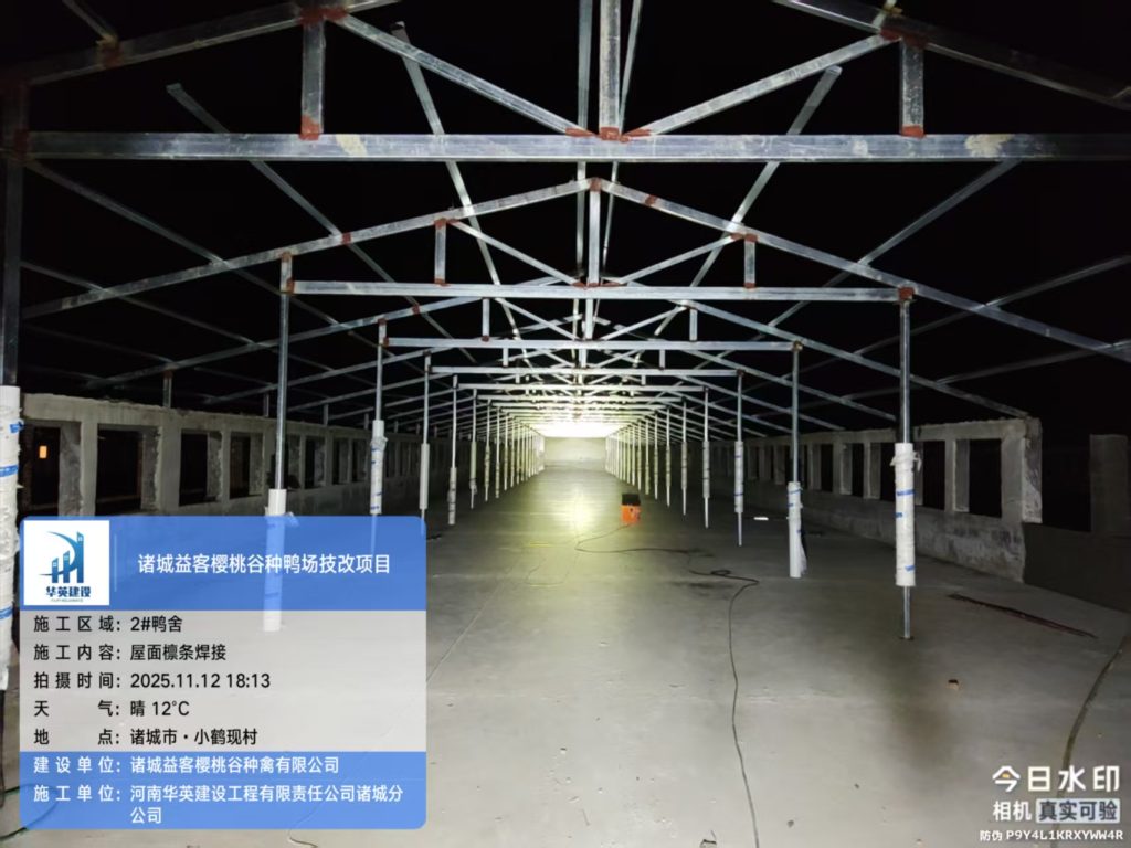 1、2#鸭舍屋面檩条安装施工。 2/5#