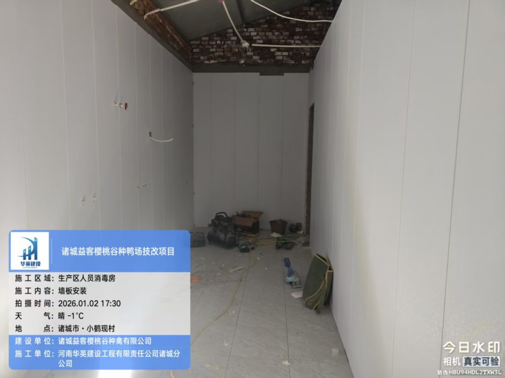 1、蛋库墙板龙骨安装。 2、二道门消毒房